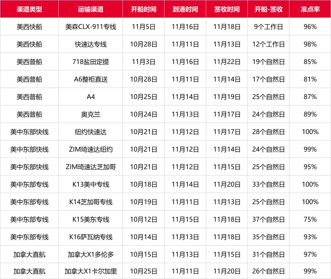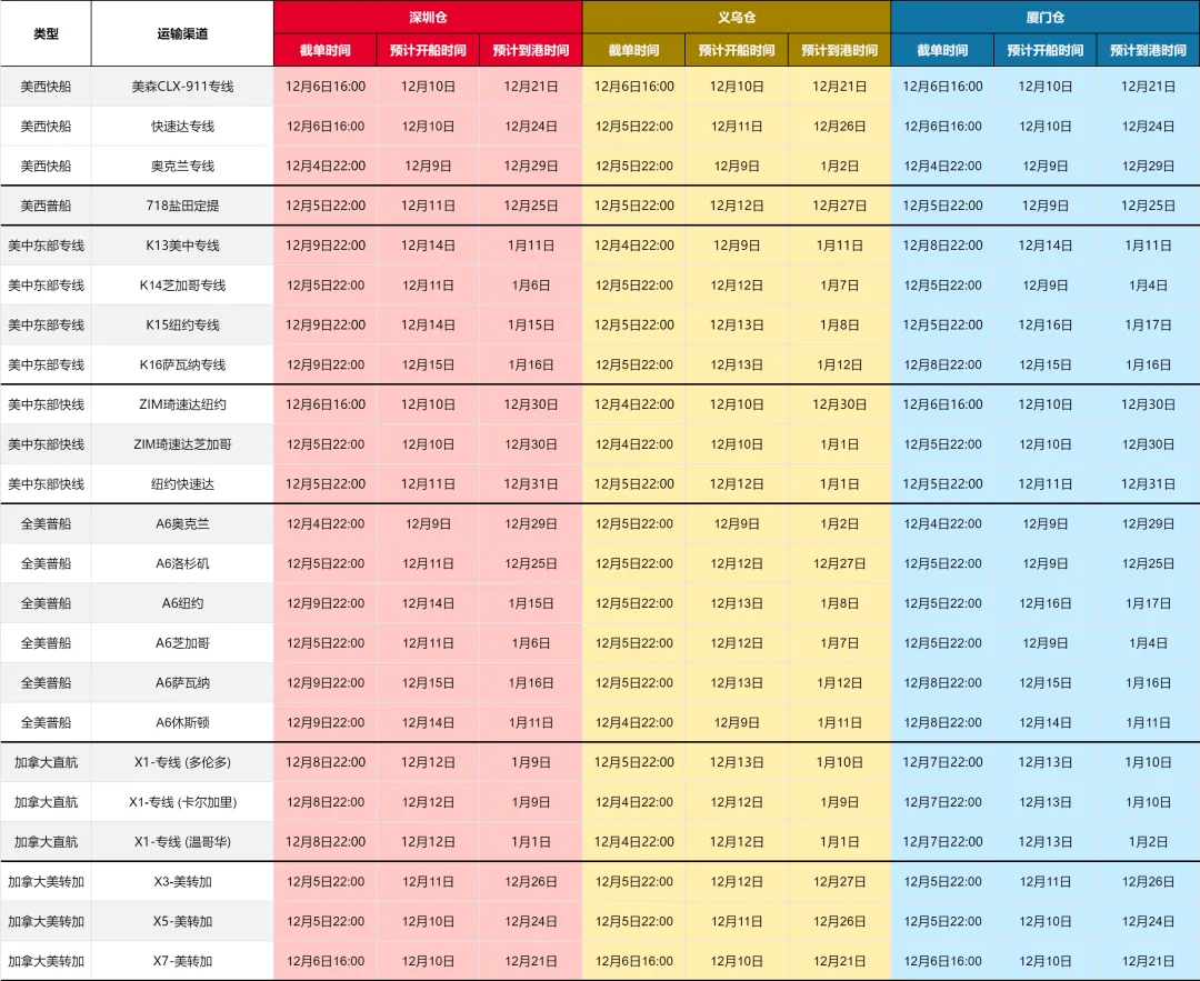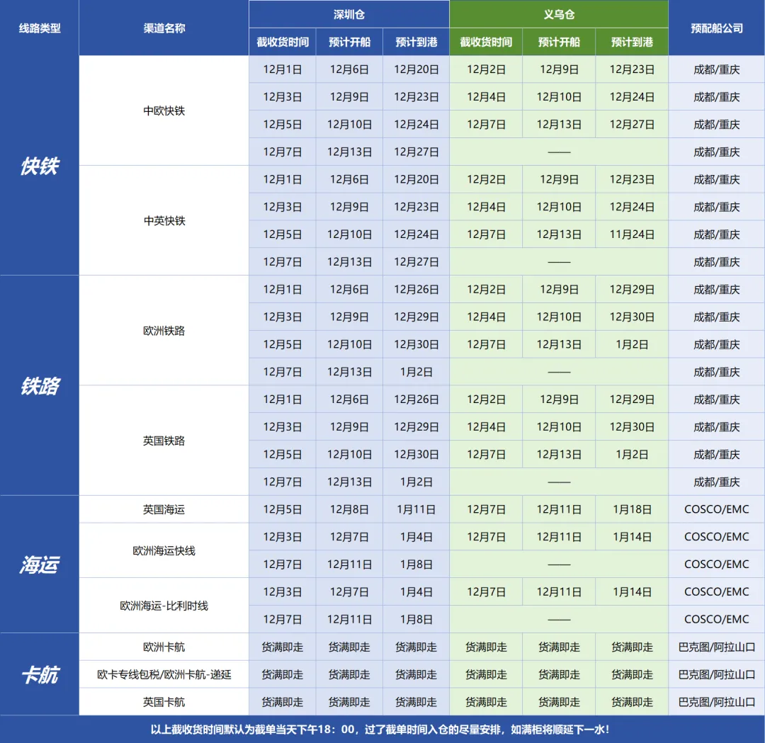 凯琦渠道 | 11月第4周发货时效 &12月第1周装柜计划