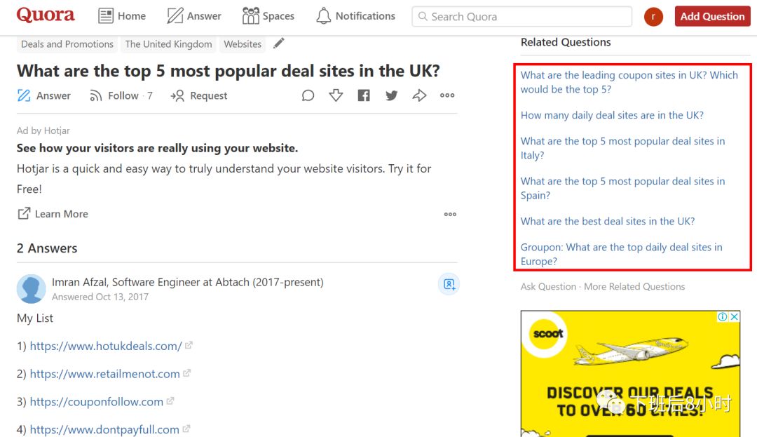 也可以直接在谷歌搜索“top uk deal site”或者在国外版的知乎Quora上去搜索,Quora有个好处就是会在右边栏推荐与你搜的相关的内容