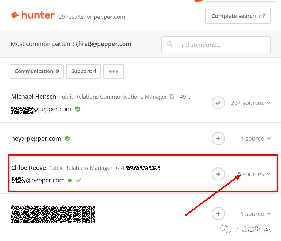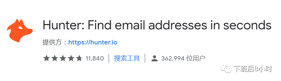 拿到邮件地址之后,也不要着急发邮件,可以用hunter这个插件找下网站上有没有这个人,看看能不能获取重要的信息。在前面的文章也有介绍过hunter这个插件,功能真的非常强大,建议大家都安装这个插件,这样对于找邮箱非常的方便,打开你想要找的网站,点击下hunter插件就可以啦