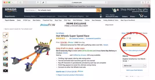 buy box就是亚马逊的产品页面右上角的一个小方框。buy box里一般会出现“Add to Cart”( 添加到购物车)或“Buy Now”(现在就买)的按钮,取决于你的亚马逊账户设置。