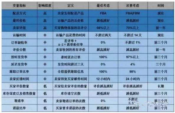 一般而言亚马逊Buy Box卖家的选择条件分为三种等级权重,共14类参考标准: