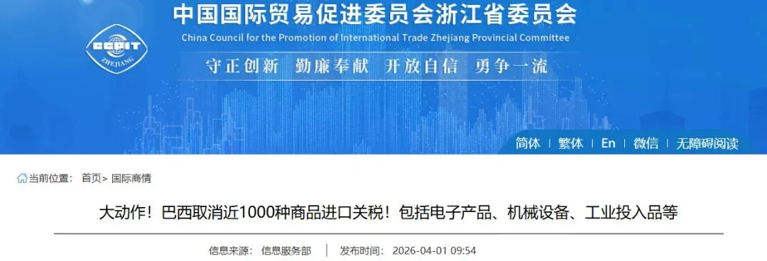 近日,巴西外贸委员会决定对970种进口商品实施零关税政策。作为巴西第一大贸易伙伴,这一变动对中国多个行业构成了直接利好。