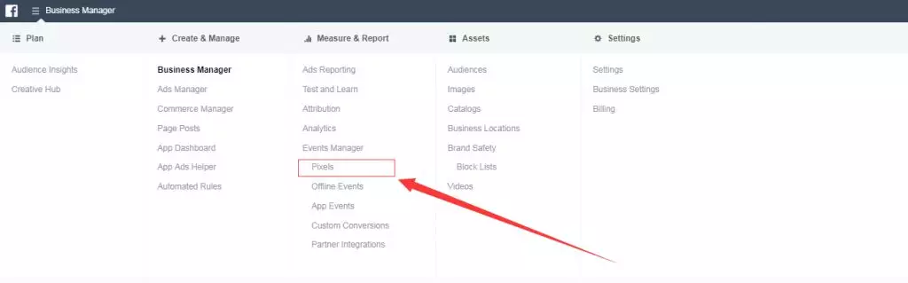 2、安装Facebook Pixel。转到您的网站并安装Facebook像素,以便Facebook识别访问过您网站的用户,创建由这些访问者组成的自定义受众群体,然后向他们展示广告。