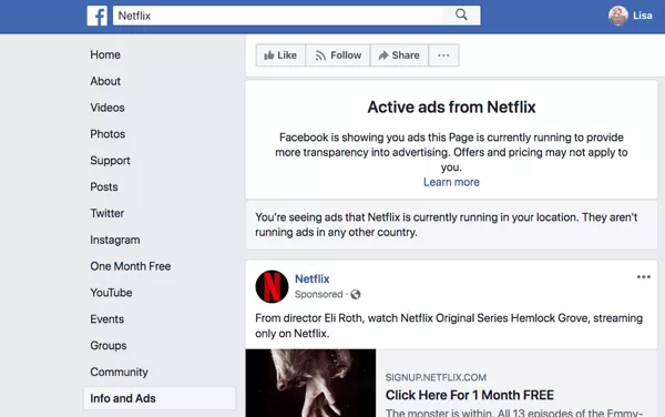 广告透明度对于确定算法非常重要。任何用户能够准确查看Facebook页面或Twitter帐户正在运行的广告的能力对于营销人员和企业尤其有用。营销人员有三种主要方式可以利用这些信息: