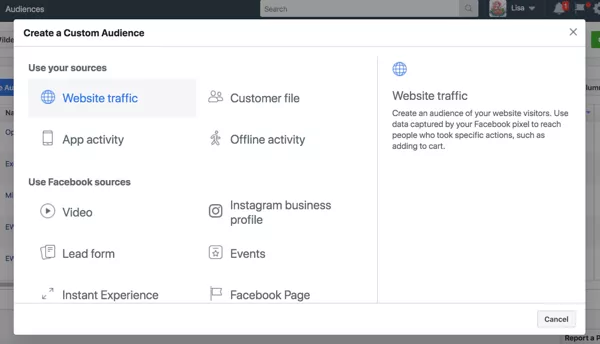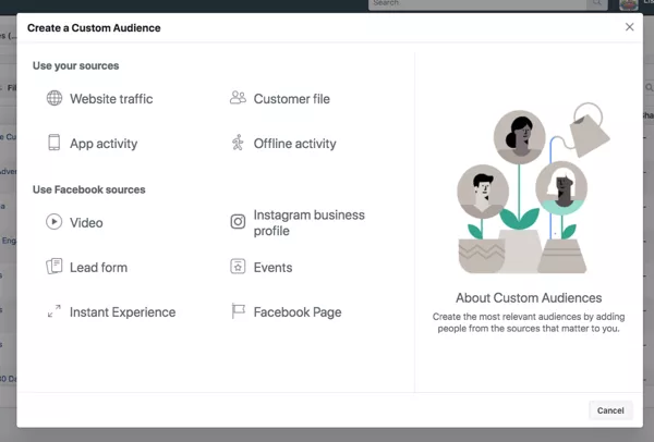 Facebook还允许企业根据他们在您的网站,产品或登录页面上的活动重新定位潜在客户。通过自定义受众群体工具,您可以创建这些联系人的列表,并使用高度相关的广告系列定位这些联系人。