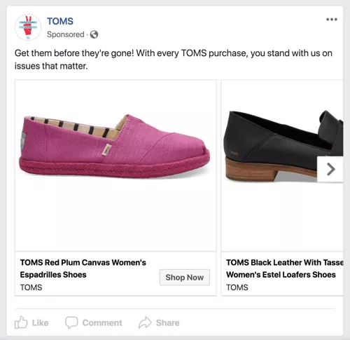 从那里开始,通过广告为过去三个月内与您的社交媒体帖子互动的人们提供品牌和产品意识。然后,您需要制作轮播广告,以定位过去30天内访问过您网站的用户。