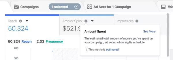 此费用指标不是您在每个广告系列上花费的总费用或金额; 这是基于广告系列目标和广告集优化的每次结果的费用。如果您设置了每日预算但没有扩展广告系列,并且每次搜索结果的费用都在下降,那么您的广告系列结果就会增加。
