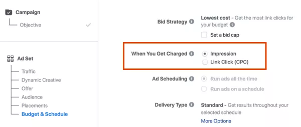 管理成本的一种方法是选择是否按每次点击费用(CPC)或每千次展示费用(CPM)收费。