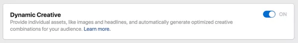 该工具可提供广告素材资源的最佳组合。它会针对您的目标受众群体运行广告组件的不同组合,例如图片,视频,标题,说明和号召性用语,以确定哪些组合可产生最佳效果。