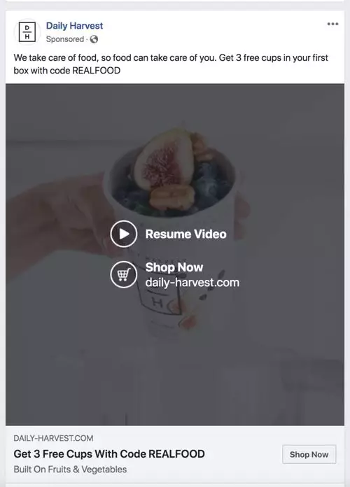 与Facebook Messenger一样,Facebook视频是Facebook内另一个为贵公司提供广告的平台。Facebook Live允许用户在其网络中的其他用户实时播放流媒体视频。一个好的策略看起来像这样: