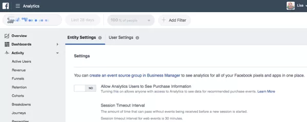 实现收入目标后,配置Facebook广告管理器以显示所需的数据。