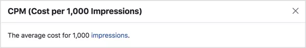 最后,看看CPM,这是cost per mille的首字母缩写。这是您每千次展示的费用。随着频率的增加以及您吸引更多目标受众,您的每千次展示费用将开始增加。这意味着它现在比以前花费更多的1000印象。这将对成本,相关性和频率指标产生影响。