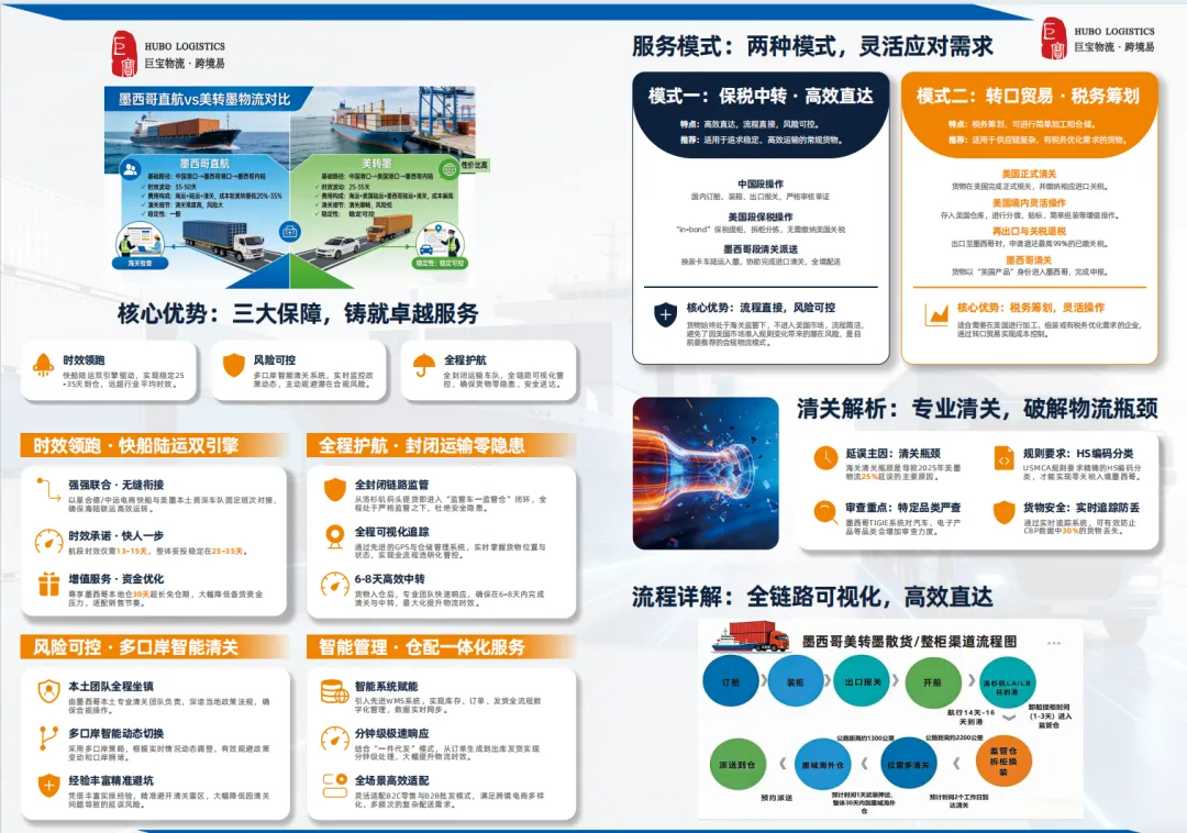 重磅推出美转墨精品专线,依托美加欧成熟运营体系,以美国为关键中转节点,无缝对接墨西哥全境末端派送资源。