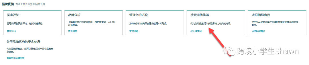 完成品牌备案的卖家,可以在后台选择品牌优势,点击搜索词优化器