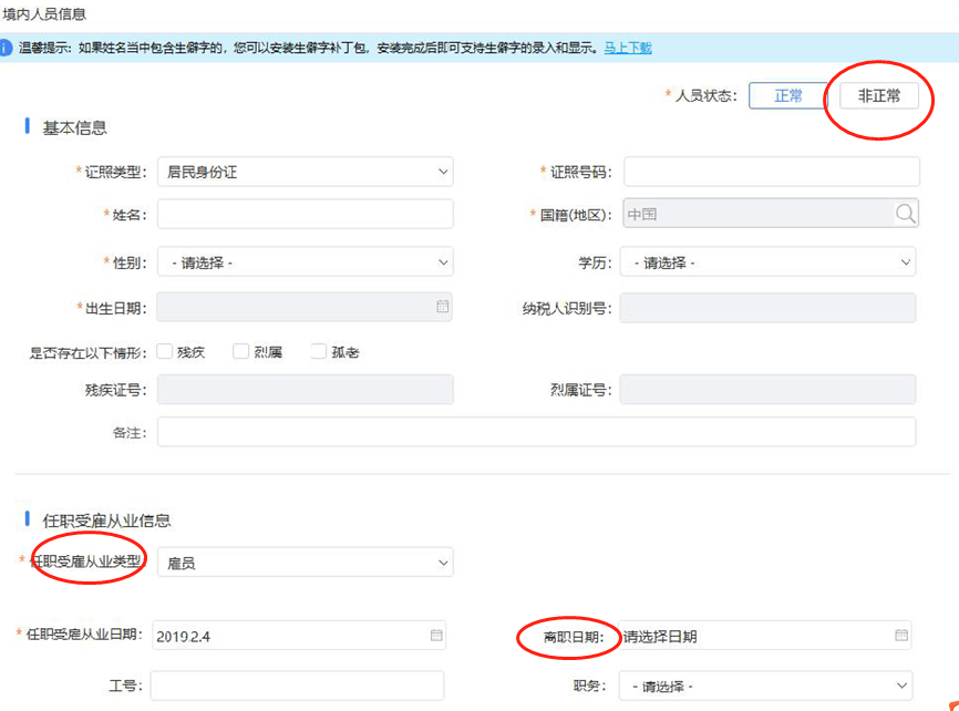 1、修正人员任职状态,作“非正常(减员)”处理