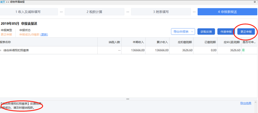 在首页逐月切换所得月份,在申报表报送界面,点击【更正申报】,将【申报状态】修改为“待申报”;