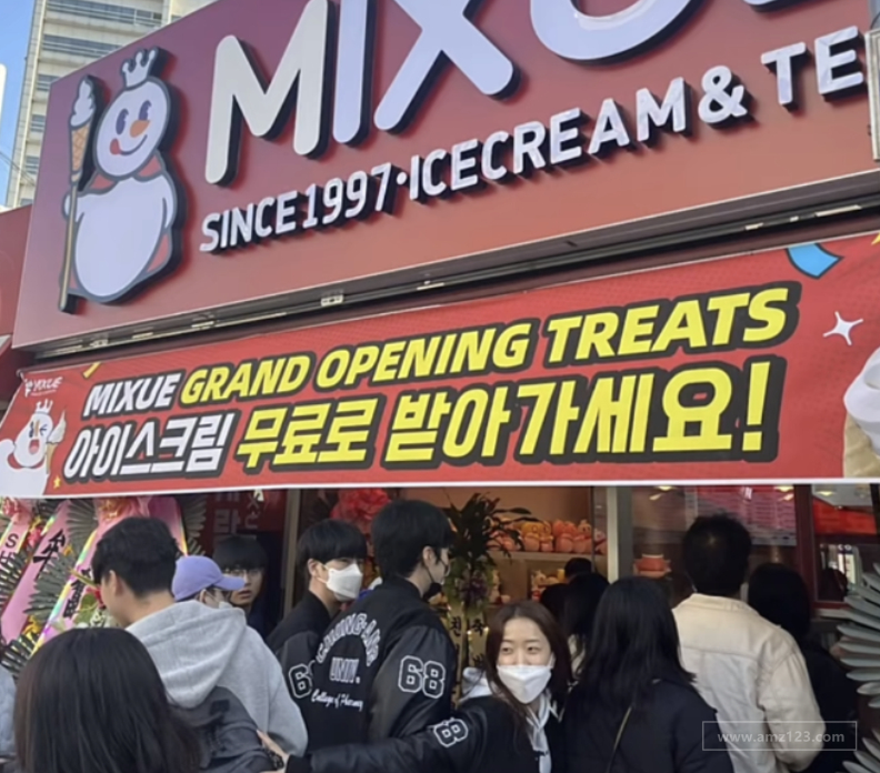 蜜雪冰城韩国首店于10月底正式开业。它位于首尔中央大学附近,当地年轻人和中国留学生经常聚集在这里。开业前三天,蜜雪冰城人气爆棚,被免费冰淇淋吸引而来的顾客挤爆了门店。
