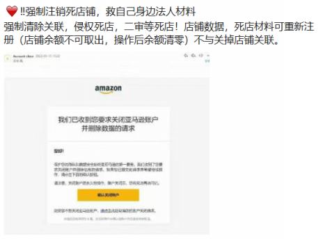亚马逊已收到要求关闭亚马逊账户并删除数据的请求。