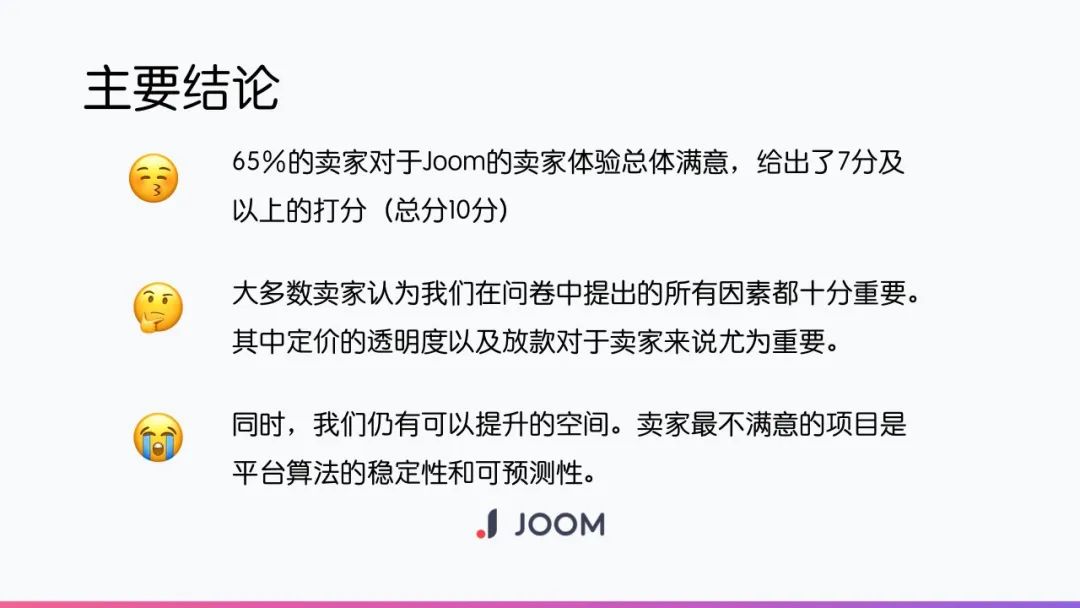 65%的卖家给出了7分和以上的评价,说明整体来说卖家近一年对Joom平台的各项政策以及功能更新比较满意。