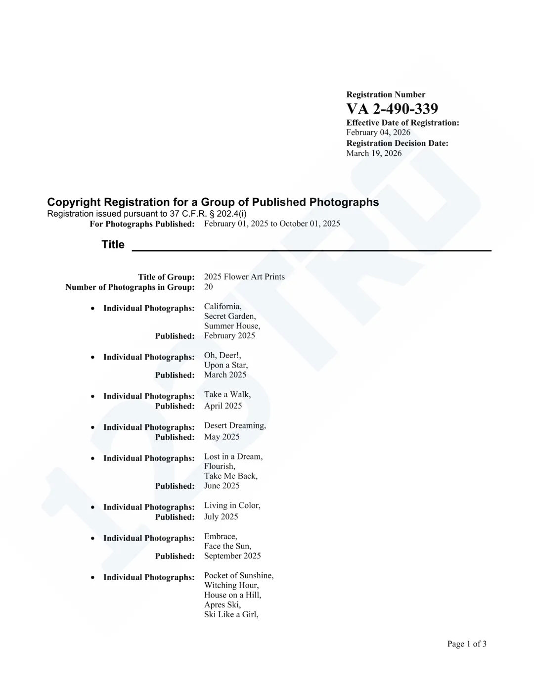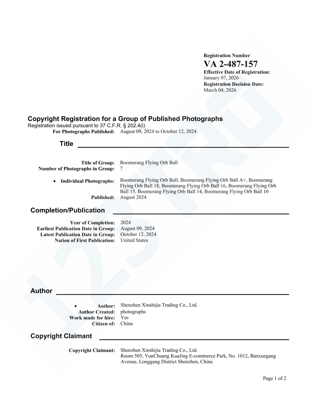版权号:VAu 1-573-581、VAu 1-573-969、VAu 1-574-015
