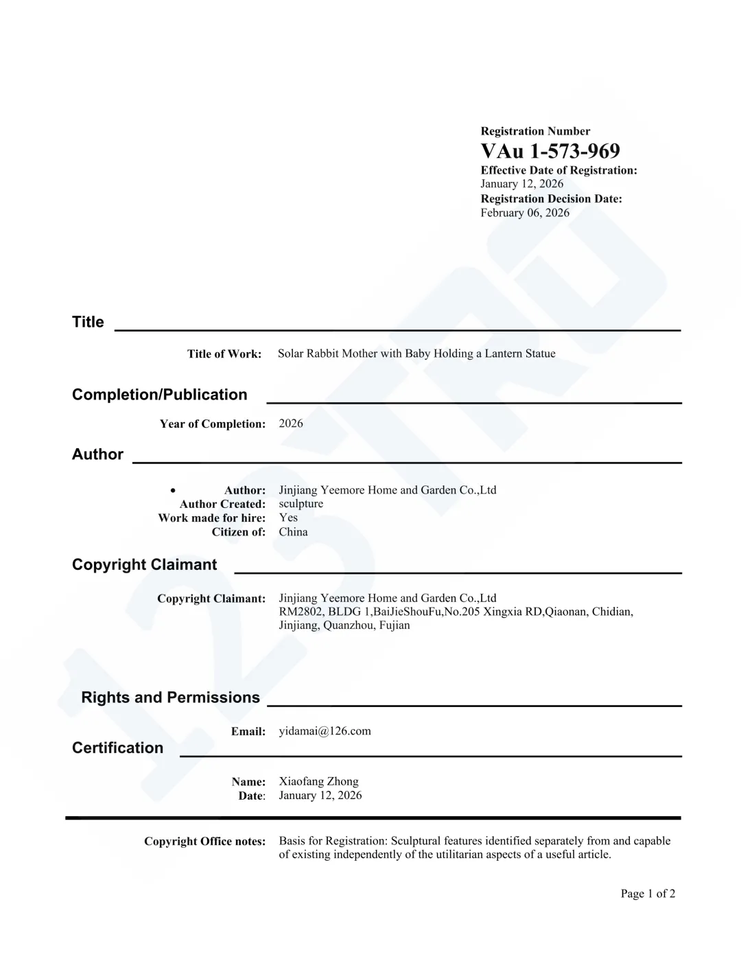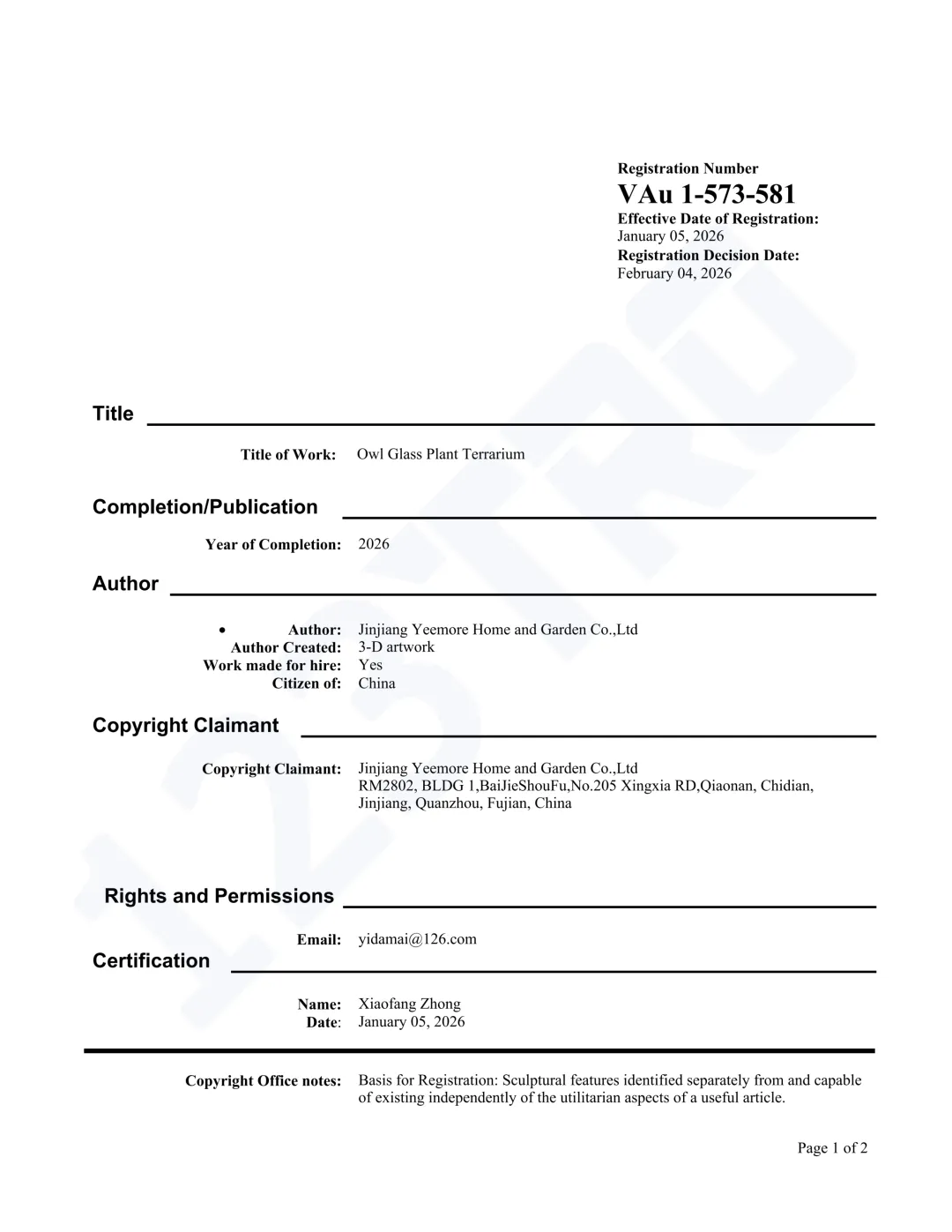 持有人:Jinjiang Yeemore Home and Garden Co.,Ltd