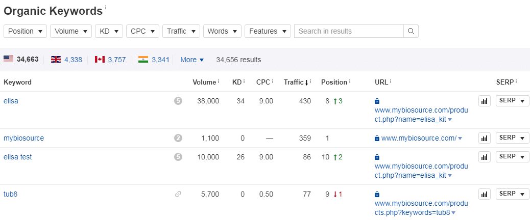 Organic keywords(自然搜索关键词):自然搜索关键词总数量,网站位于谷歌前一百的关键词都会被统计进去,而且关键词在所有国家的排名都会被统计一遍,比如,有一个关键词美国谷歌排第10,英国谷歌排第20,日本谷歌排第99,那么这个词会被统计三遍。