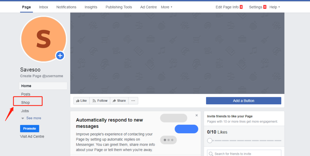 这样操作后, 你就可以在你的page内看到shop的选项卡了;