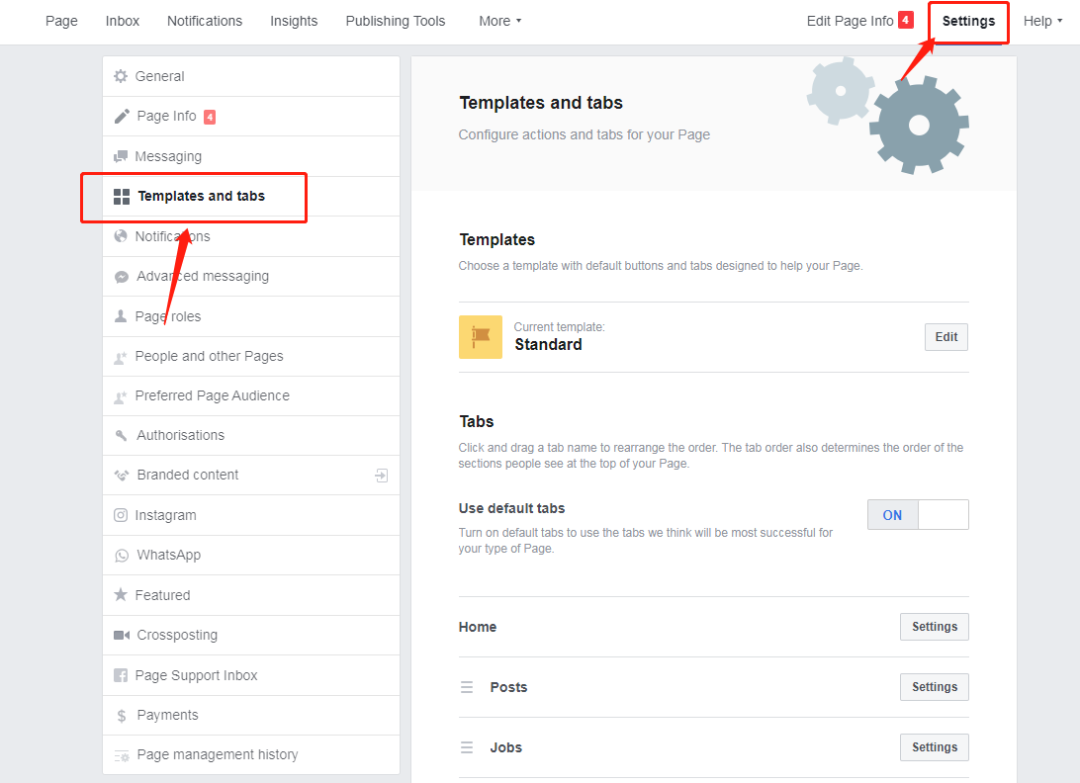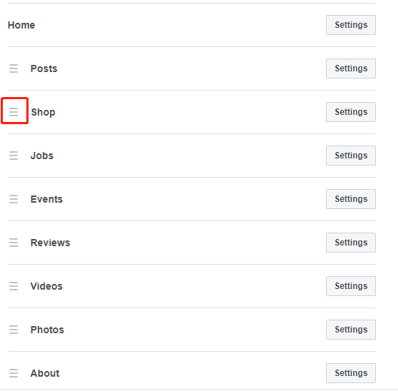 当你创建了page后,你可能会发现你的page内的选项卡里面没有shop的选项,此时,你需要在settings内将shop的选项添加进去;
