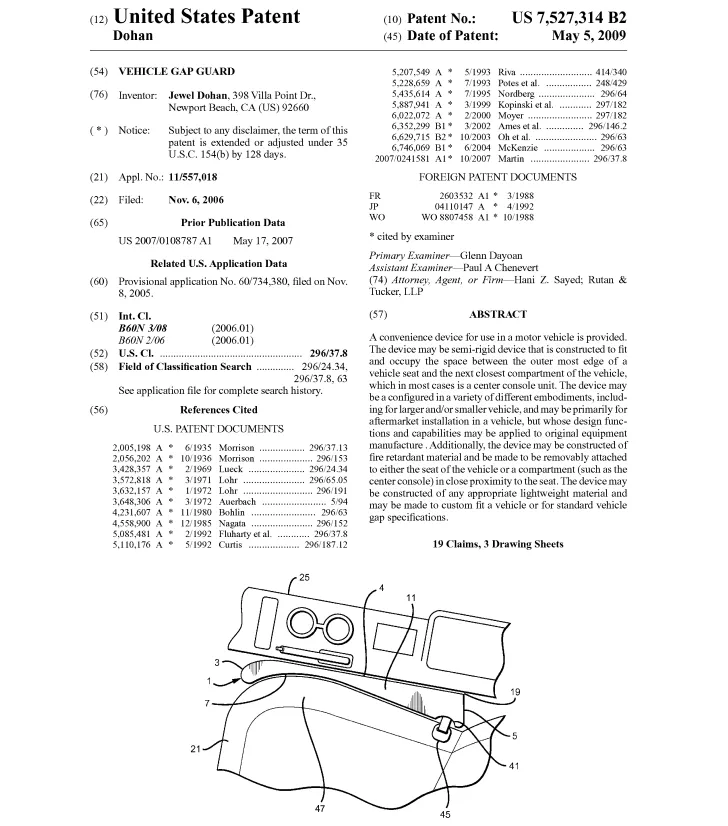 涉案专利名称Vehicle gap guard,专利号US7527314B2,于2006年11月6日申请,2009年5月5日授权,预计到期日为2027年3月14日,这是打算在专利到期前狠狠“收割”一波?