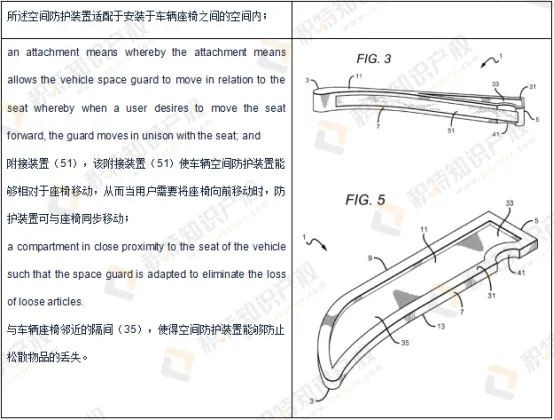 相较于已过期专利中的方案,本专利的防护装置可与座椅同步移动,从而确保防护装置与座椅和扶手箱之间的空间完美贴合。