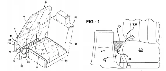 如果产品的环绕座椅的边缘设有允许安全带穿过的切口,并且有例如魔术贴、粘合剂、螺钉或摩擦固定等附接到座椅的附接装置,顶部有接纳掉落物品的隔间,则落入专利保护范围。