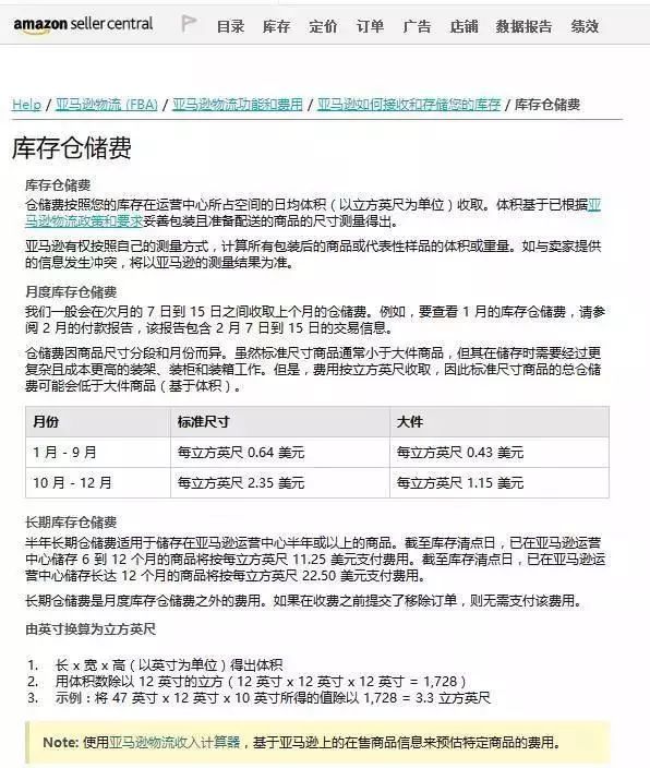 从这个费用上,可以看出库存周转率,还有库存的合理控制的重要性了。如果库存周转率比较不错,那么一个产品只需要支付1次月度仓储费用,一个大件一些的产品,可能一个月都是要0.7美金,假设一个产品只能赚个5美金,基本上放上3个月以上,就是赔本了。