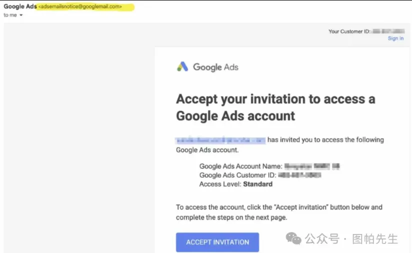 去年年底图帕先生就曝光过,出现一种诈骗手法,你可能会收到一个谷歌广告账号的邀请,但别高兴点接受了,觉得可以去spy别人的数据。