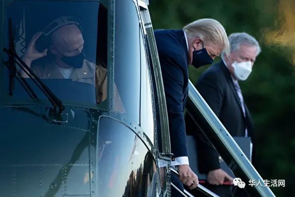 川普2日凌晨推文证实确诊他与第一夫人感染新冠病毒,之后出现类似感冒症状,同日傍晚住进马里兰州华特裡德军事医学中心接受治疗。