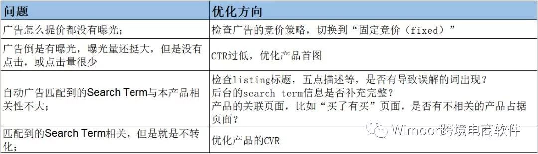 推广前期,广告主要是用来反馈产品的listing上的一些问题,以协助更好的优化listing;以及摸清产品的市场情况比如这个产品的CVR情况,市场接受度等数据的;对于协助优化listing方面,常见的广告层面问题及对应解决方案比如: