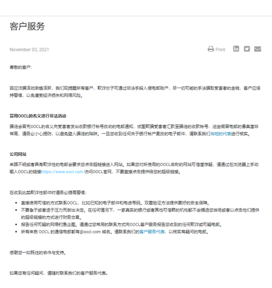 来自OOCL的电邮诈骗提醒