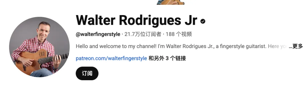 Walter Rodrigues Jr. 是一位在YouTube上拥有广泛影响力的指弹吉他演奏者与教育者,拥有21万订阅者。