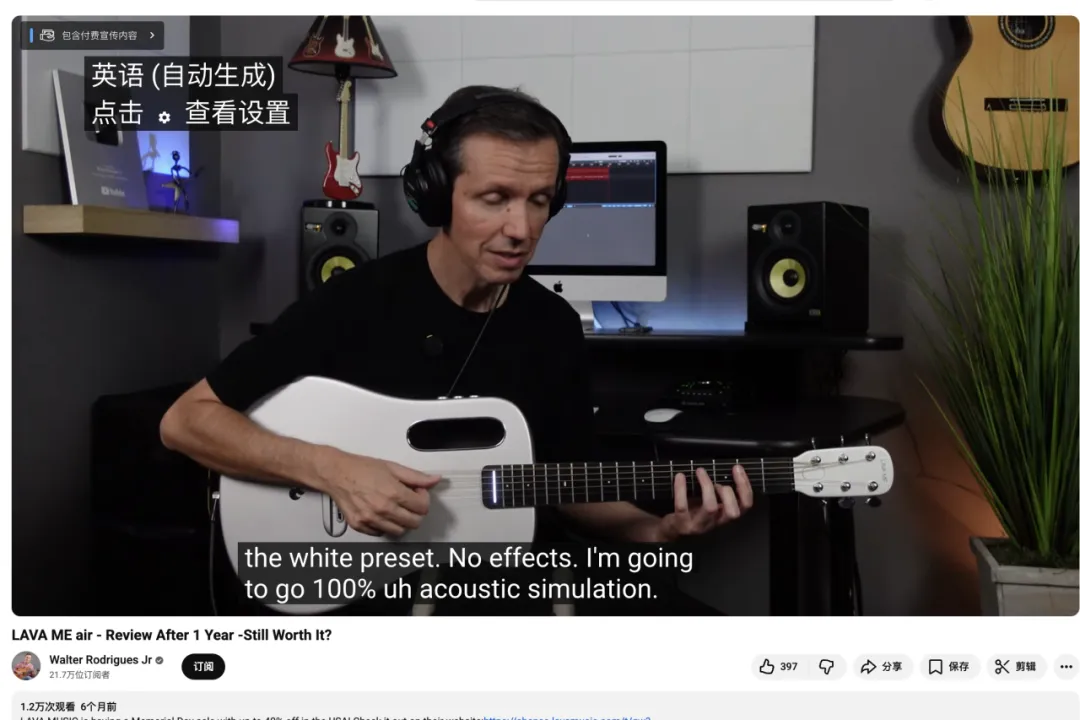 他的观众并非泛泛的流量过客,而是对吉他音色、演奏技巧乃至器材本身抱有浓厚兴趣的精准群体——他们正是高端旅行吉他与创新材质乐器的核心潜在消费者。LAVA ME选择他,正是看中了其专业权威性所带来的“信任溢价”。