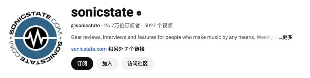 Sonicstate是音乐设备领域拥有25.7万YouTube订阅者的权威媒体。其内容深度聚焦合成器、音频设备的评测与行业资讯,观众精准锁定为全球的音乐制作人、硬件发烧友和工作室专业人员。
