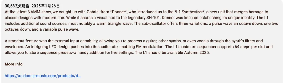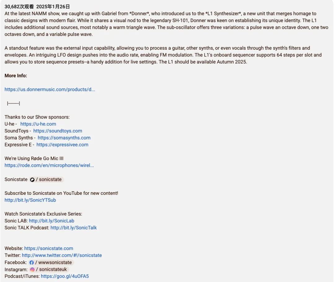 合作主要采取两种高信任度形式:首先是在NAMM等顶级行业展会进行现场报道,通过对品牌人员的采访和产品上手,在业内迅速建立存在感与新品认知;其次是制作深度评测视频,通过长达20多分钟的专业演示,详尽解析产品音色、振荡器等核心技术,为专业用户的购买决策提供坚实依据。