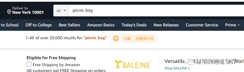 以野餐包为例,我们搜索Picnic bag 首页搜索结果超过20000条,预估产品会超过40000个.竞争偏大,不适合小卖家进入.