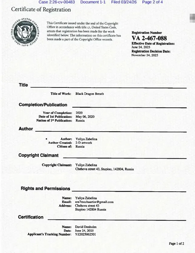 【26-cv-483】"黑龙吐息"版权来袭!跨境卖家速看避雷!
