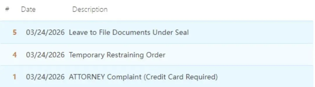 目前,案件处于前期立案阶段,TRO(临时限制令)尚未获批。