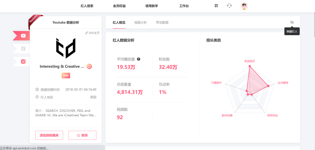 借用网红频道的分析数据,我们可以判断网红视频的粉丝粘性,结合网红商业数据分析来判断该海外网红是否可以合作。