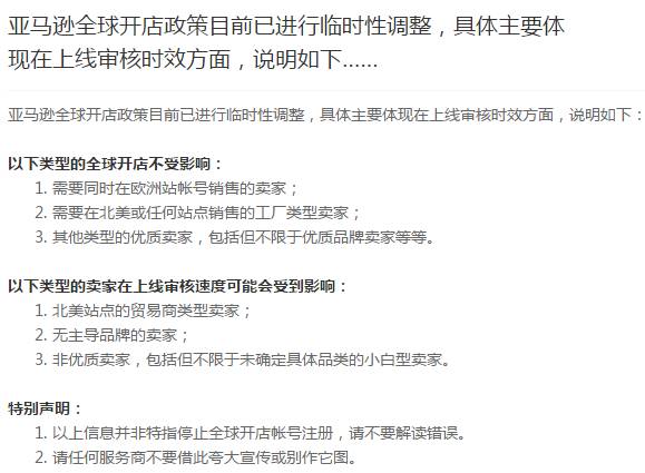 昨天,跨境电商社区知无不言管理员称,亚马逊全球开店政策目前已进行临时性调整,具体主要体现在上线审核时效方面。部分类型的卖家在上线审核速度上可能会受到影响,但并非特指停止全球开店帐号注册。