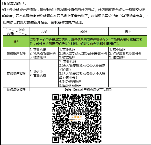 现在贸易商单开美国站不保证过审时间,所以单开美国站的小伙伴就不要催了。如果确实有开店需求请欧美一起开,扫描全球开店的二维码,意向站点选择欧洲,待收到商户经理的邮件之后再在邮件里向对口的商户经理说明欧美一起开即可。