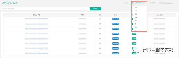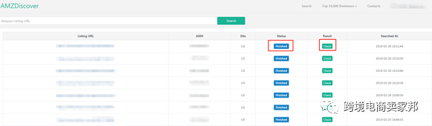 当系统抓取完成后,状态会显示为:Finished;点击 Check按钮,进入抓取到的卖家信息列表。