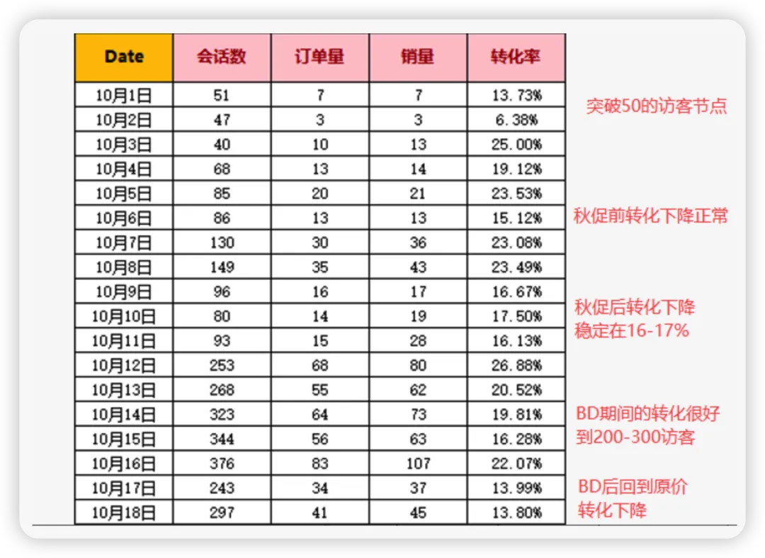 在LD/BD前台红色促销的标志和价格优惠,此时的转化率是比平时好的,这是最好的推动链接流量和单量同时上涨的时候,有些平时没那么有竞争力的词,此时不推更待何时,平时效果很好的词,此时很有可能冲到前排,要做好广告预算的分配,要留出空间来让这部分词的自然位置去承接。