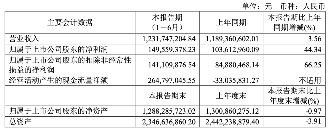 今年上半年,富佳实业实现营业收入12.32亿元,同比增长3.56%,实现归属于上市公司股东的扣除非经常性损益的净利润1.41亿元,同比增长 66.25%。