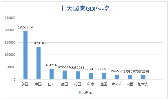 2017十大国家GDP排名如下: